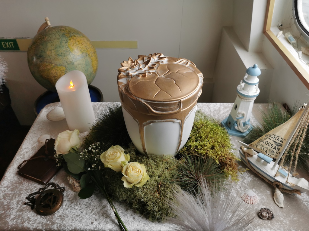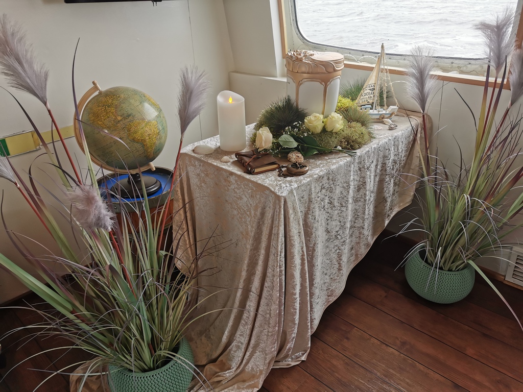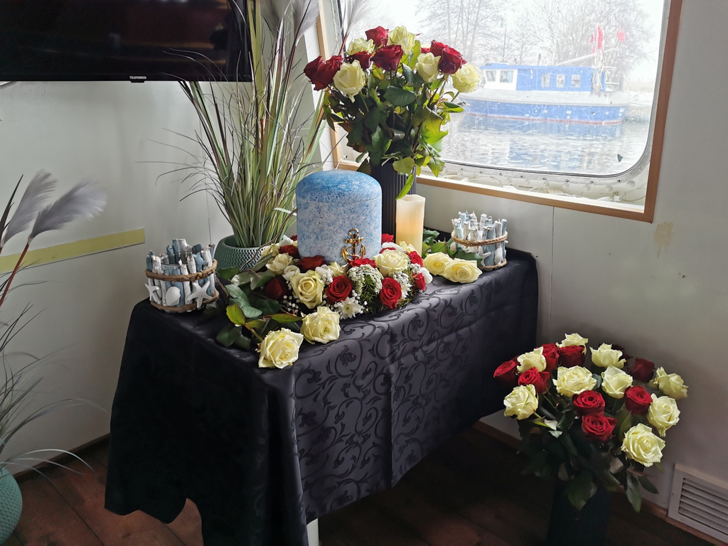 Sie haben die Möglichkeit, auf der Fahrt zur Beisetzungsposition, in stillem Gedenken oder mit einer Trauerfeier von Ihrem lieben Verstorbenen Abschied zu nehmen. Der Kapitän, ein Pastor oder Redner ihrer Wahl helfen Ihnen, diese schwere Stunde zu gestalten. Die Trauerfahrt beginnt im Hafen von Altwarp und dauert ca. 1 Stunde.