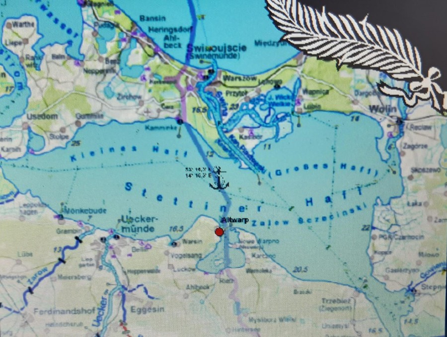 Ebenfalls bekommen Sie von uns eine Seekarte vom Stettiner Haff, mit genauer Position des Seegrabes, ausgehändigt.