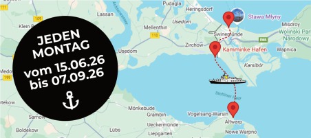 10:00 Uhr ab Altwarp - 11:10 Uhr an Kamminke